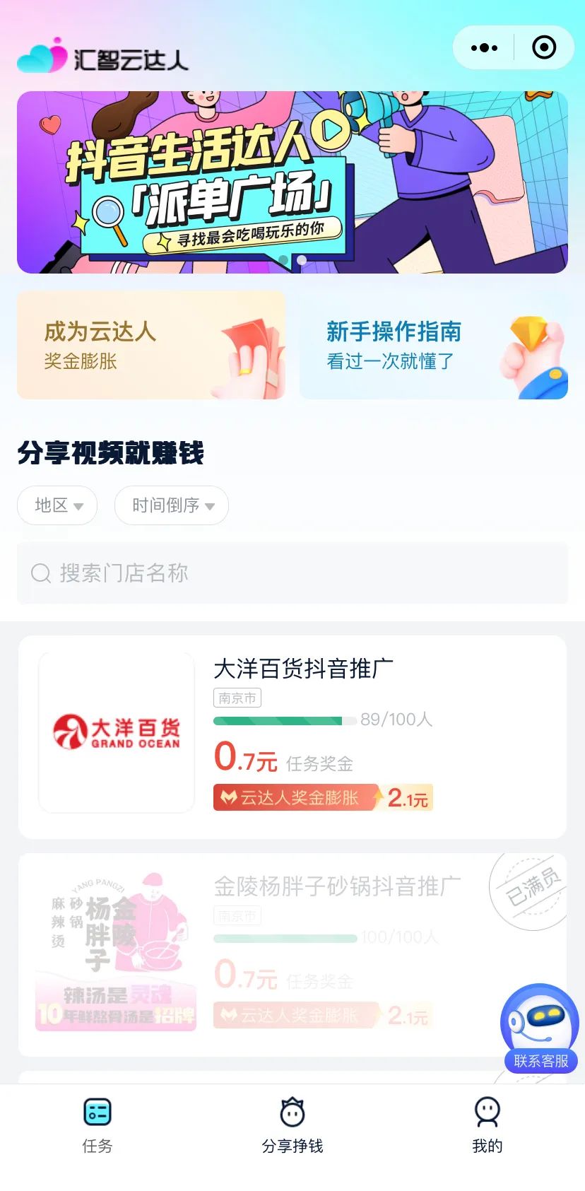 我们要找大量的本地用户帮他转发视频,视频做好了没用,要转发到别人的号里才会有流量,发到自己的号里发一百条都没用,发到别人的号里面会覆盖到不同的用户群体,这就是我们另外的产品。