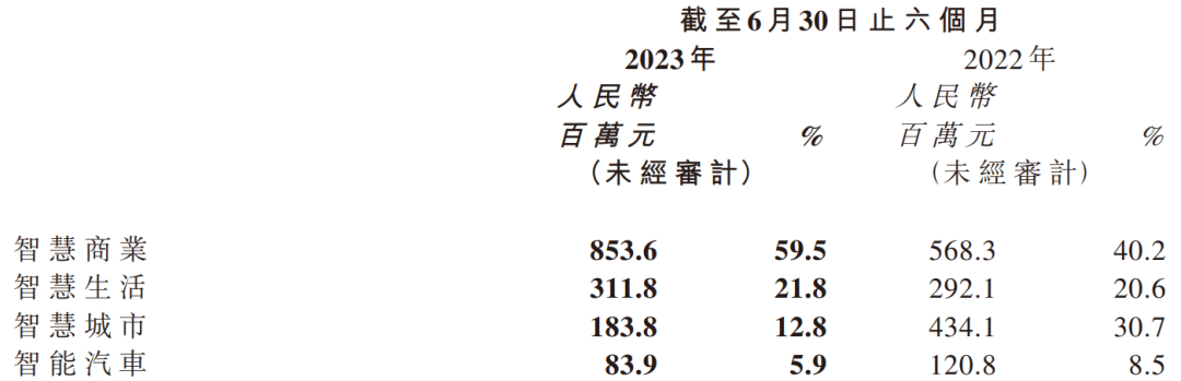 在业务方面,面向政府的智慧城市业务仍继续承压,在上年同期腰斩的情况下继续大幅下滑近60%,此前高速增长的智能汽车也下降超过30%。