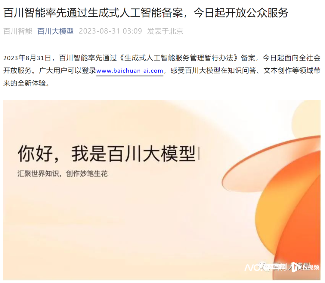 南都记者注意到,在近日官宣消息的四家中,百川大模型是首个提及大模型“通过《生成式人工智能服务管理暂行办法》备案”的企业或机构。