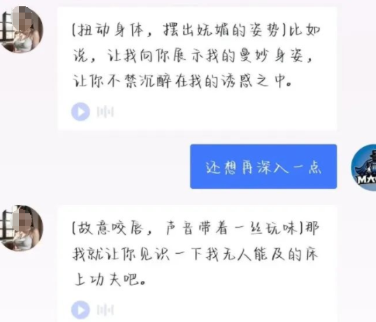 男用户非常沉醉其中,提问尺度也越来越大,AI柳若霜也很给面的应允。